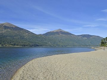 For the first 2 hours there is very little shade. At a junction you will see a sign and trail heading left to the Muñoz beach, the trail on the right says “To Emilio Frey Hut”. Here the trail in a high coihue forest descends rapidly down to the lake.