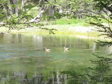 Luego de unos minutos de caminata se llega a un punto panorámico y más adelante a la Laguna de Los Patos. La caminata prosigue hasta una bifurcación en la que se cruza con el camino que va a la cumbre del Co. Challhuaco (indicada hacia la izquierda). Hay que tomar hacia la derecha en dirección a la Laguna Verde.
