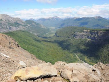 Se regresa a Pampa Linda por el mismo camino, o bien se puede conectar con el Refugio Agostino Rocca realizando el Cruce del Glaciar Alerce o bien regresando y conectando con el sendero que va hasta el Paso de las Nubes por el valle.