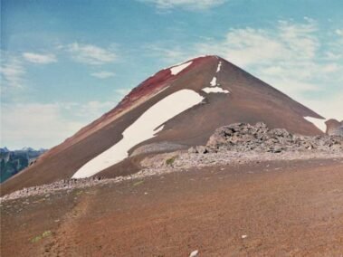 Aquí cambia el terreno, constituido por piedras lajas sueltas y arena. Este último trayecto está indicado por pisadas, pircas y algunas marcas de pintura roja; pasa por el hito fronterizo y tras una subida de 15 minutos en zigzag se alcanza la cumbre del Cerro Volcánico. Desde este mirador natural se pueden ver el Volcán Osorno y el Puntiagudo, los lagos Fonck y Hess, las lagunas Cauquenes y la cara sur del Cerro Tronador.